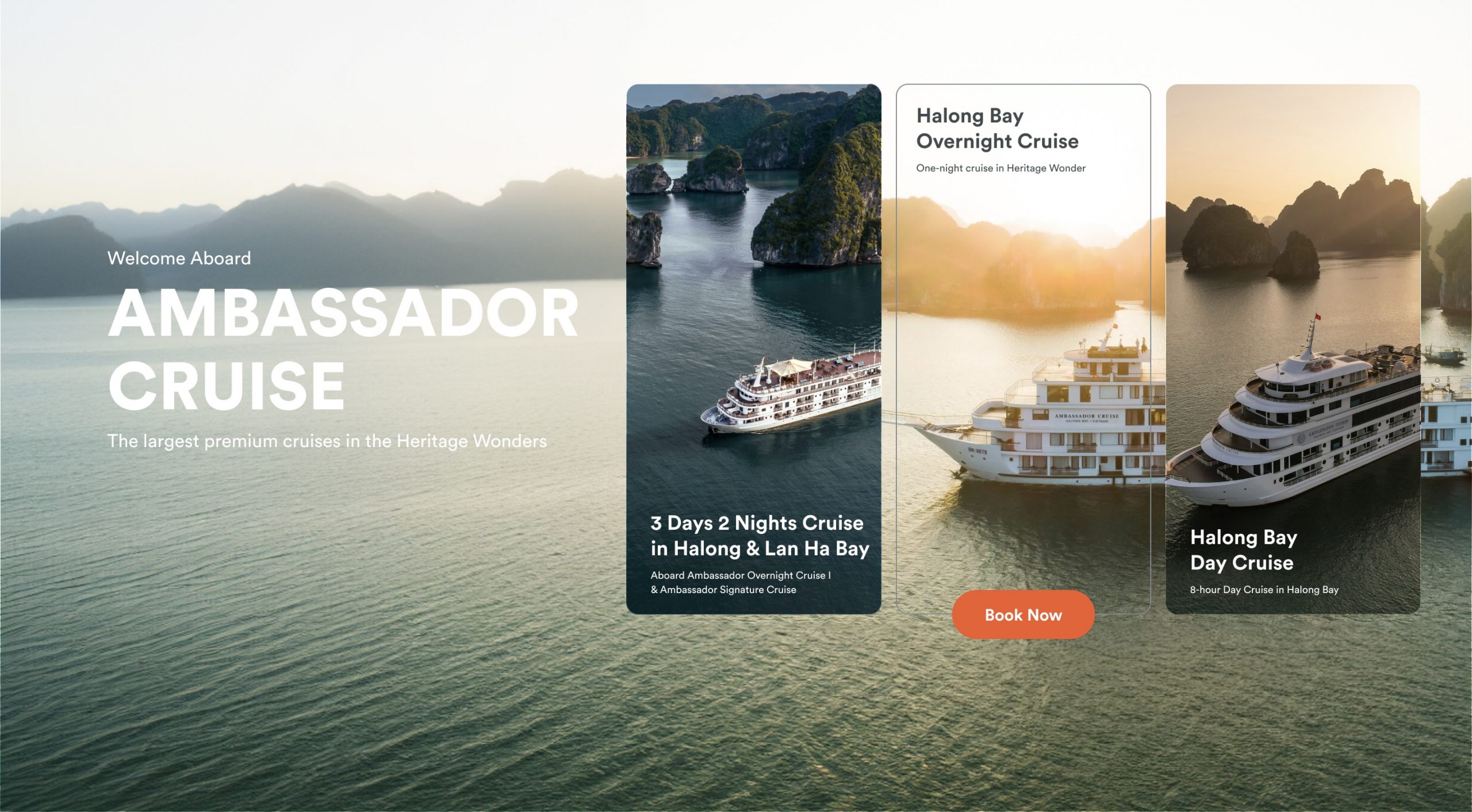 The Ambassador Cruise fleet offers luxury and style, with modern comforts and top-notch services. Each ship ensures an unforgettable voyage through stunning locations of the World Heritage Wonders - Halong Bay and Lan Ha Bay.