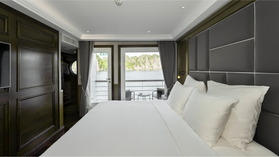 The Ambassador Executive Balcony Cabin, nestled on the second deck of the Ambassador Signature, offers an exquisite retreat with its private balcony providing breathtaking views of the bay.